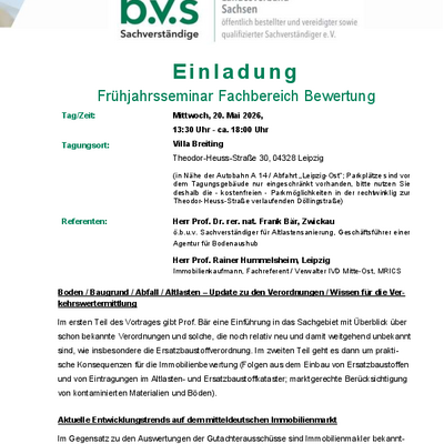 Villa Breiting Leipzig Tag/Zeit: Mittwoch, 20. Mai 2026, 13:30 Uhr - ca. 18:00 Uhr Tagungsort: Villa Breiting, Theodor-Heuss-Straße 30, 04328 Leipzig (in Nähe der Autobahn A 14 / Abfahrt „Leipzig-Ost“; Parkplätze sind vor dem…